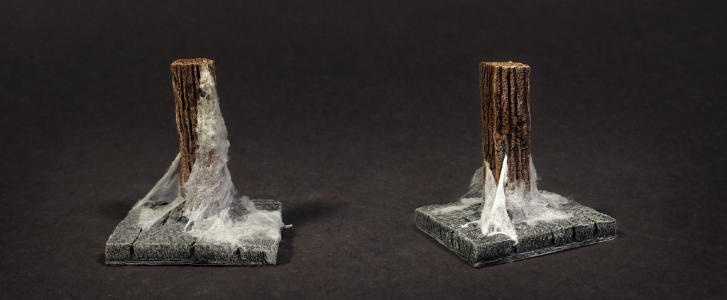 These baby wipe cobwebs are a little fiddly to get started with, but once you build up a small supply of the base materials they’re easy. They’re perfect for adding atmospheric flavour to tabletop roleplaying games like Dungeons and Dragons, or for adding to horror-themed dioramas.
