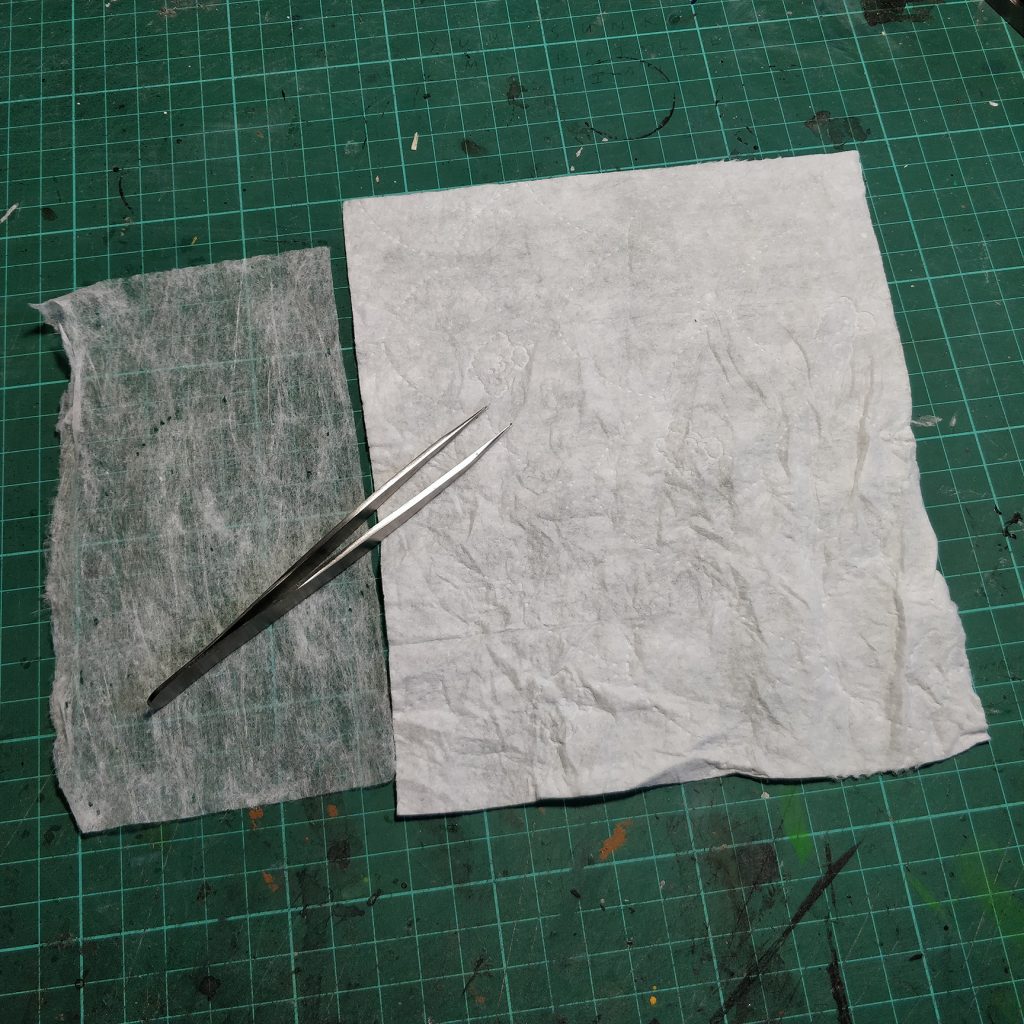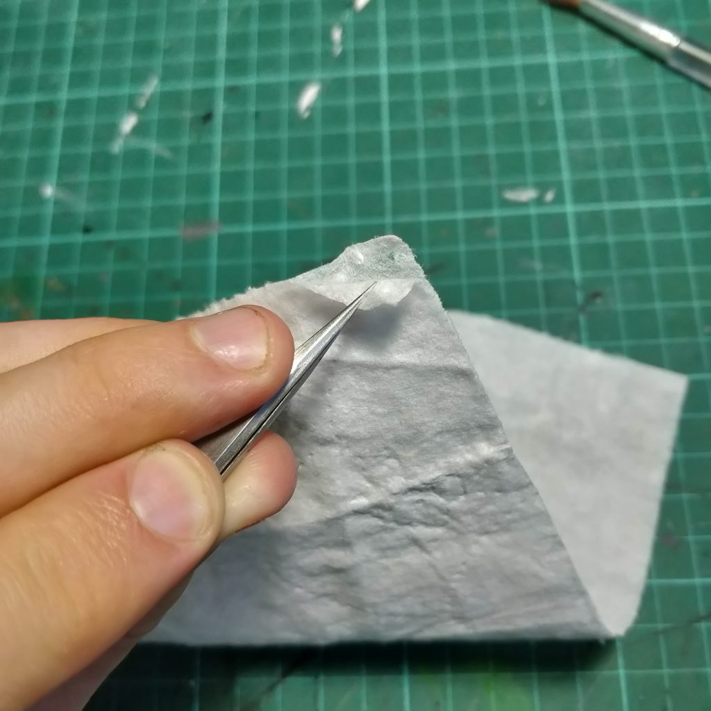 This is far and away the fiddliest step. The secret to this lies in the construction of baby wipes (what a sentence). Like toilet paper, baby wipes are made of several much thinner sheets bonded together. Using tweezers and some patience, you can start to delaminate these individual sheets.
